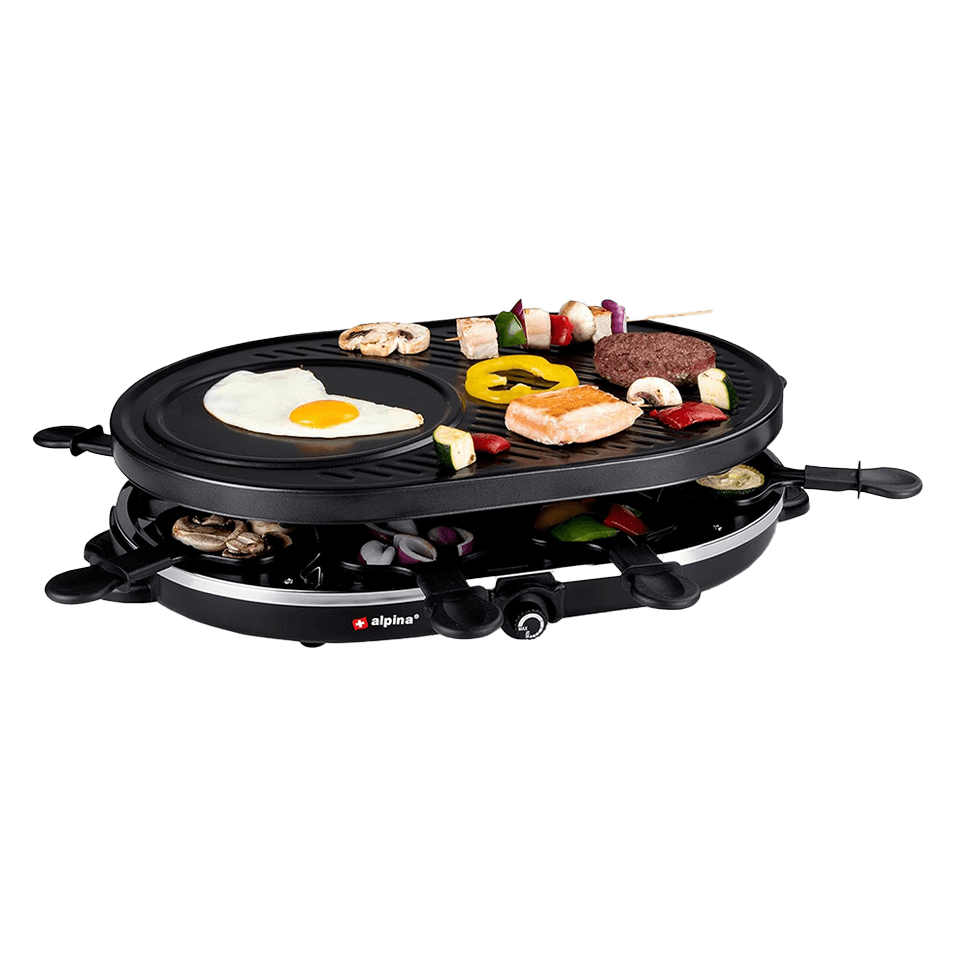 - Barbecue électrique combinant des raclettes et des grillades avec poêRéféles et spatules