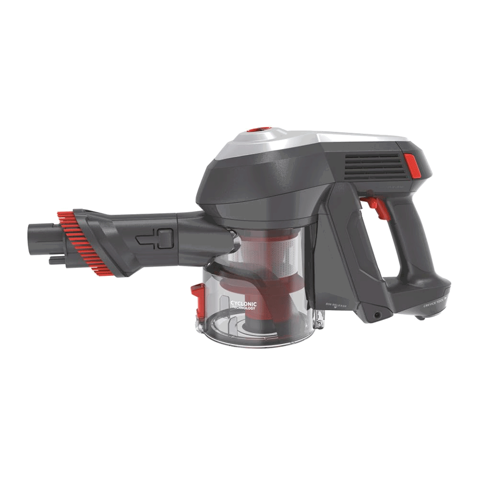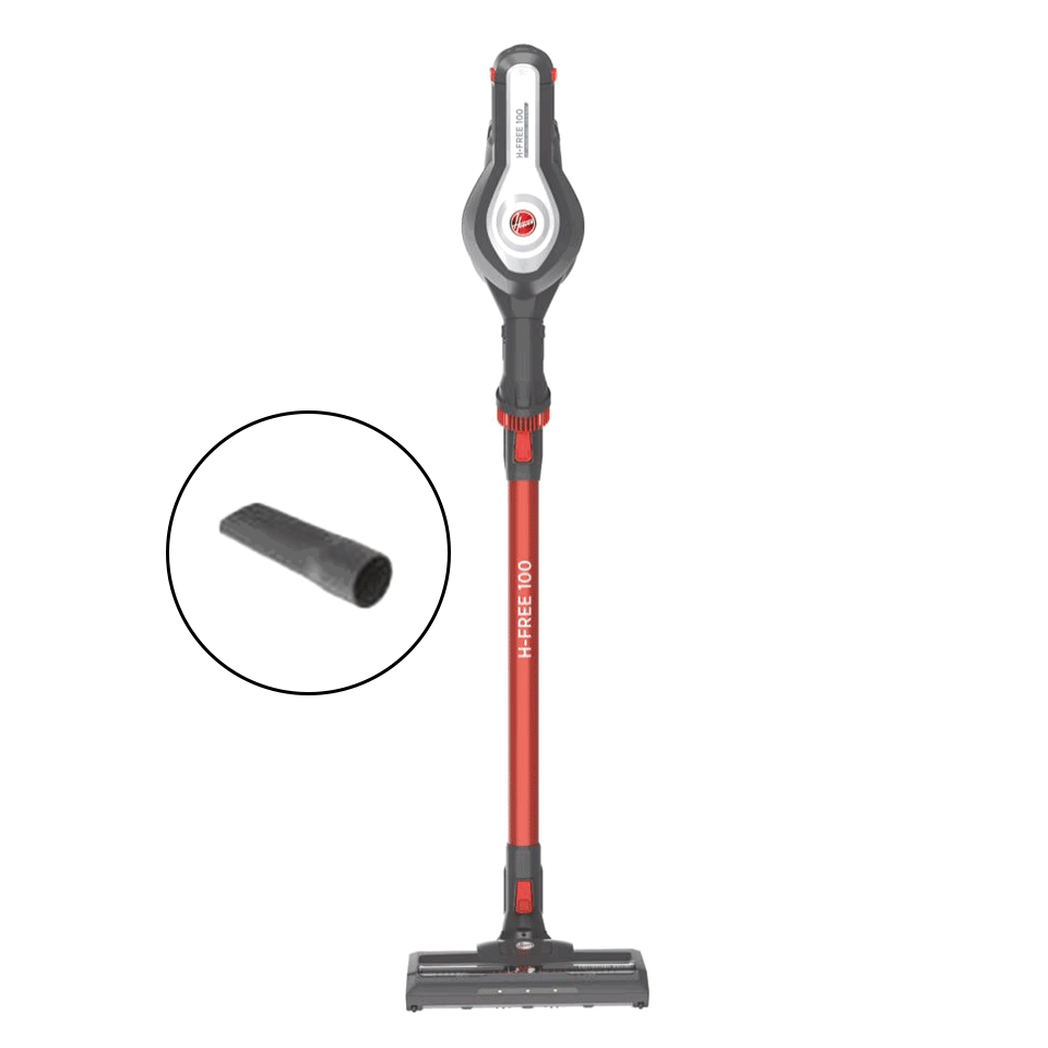 L’aspirateur balai sans fil HF122RH est équipé de 2 accessoires prêts à l’emploi, directement rangés sur l’aspirateur balai.