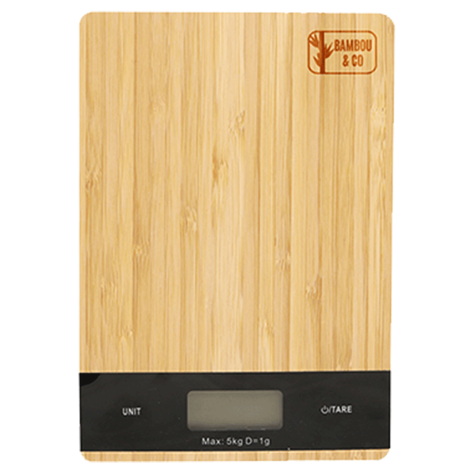 Le plateau en bambou robuste protège la surface de la balance tout en lui donnant un aspect naturel et durable.