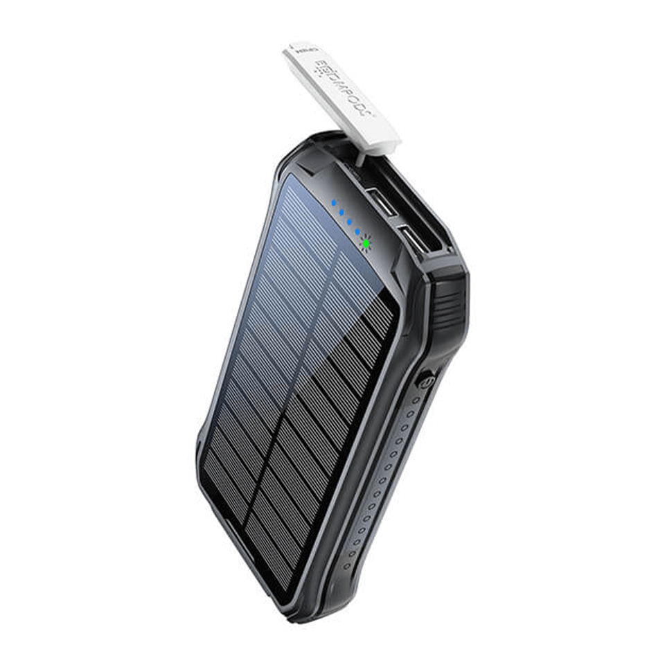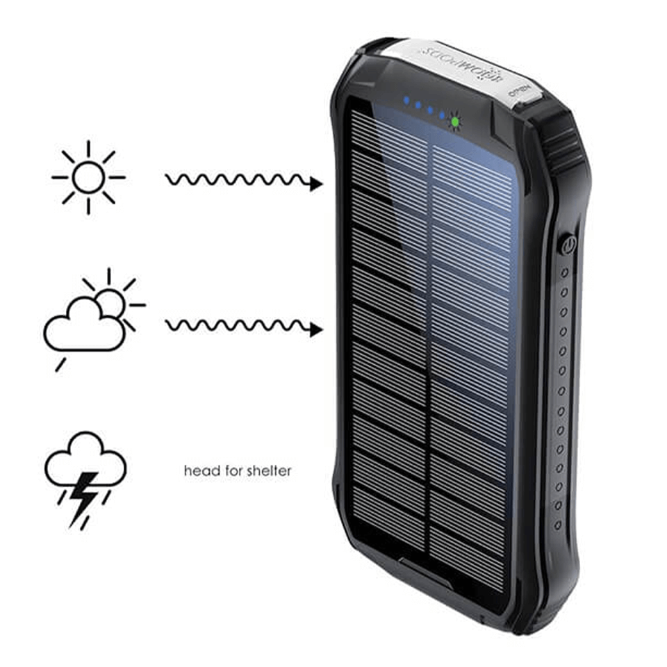 - Alimentation solaire par neutrons et compatible avec USB-A et USB-C pour charger jusqu’à 2 appareils en même temps