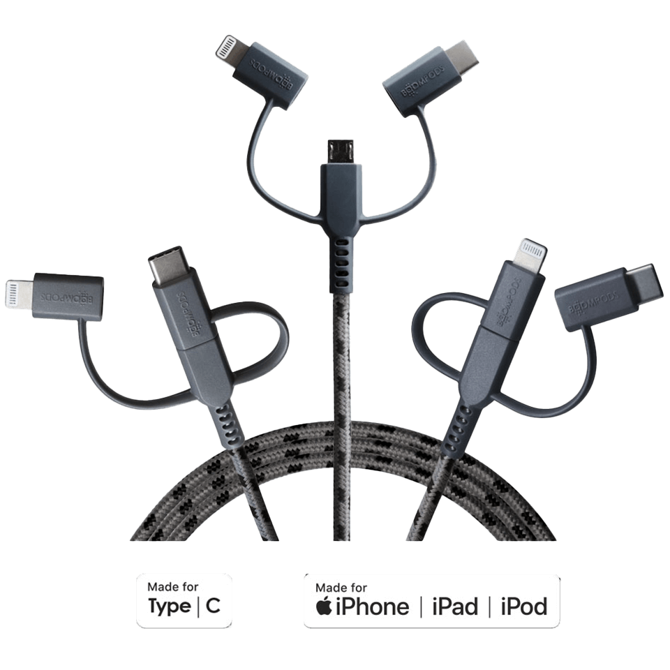 Un seul câble pour tous vos appareils : Micro USB, USB-C et Apple Lightning.
