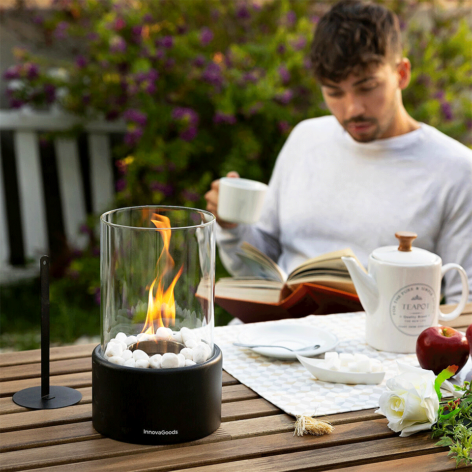Apportez chaleur et élégance à votre intérieur ou votre extérieur ventilé avec cette cheminée au bioéthanol.