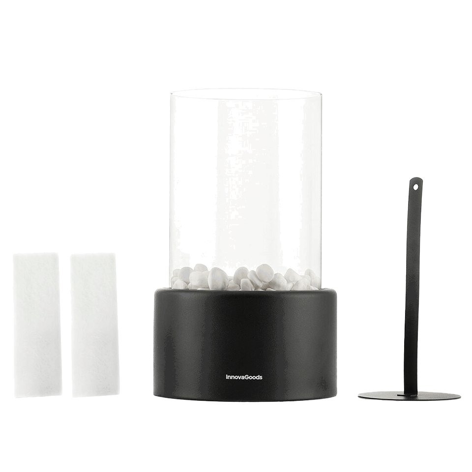 Elle inclut deux mèches réutilisables, des pierres décoratives et un accessoire pratique pour allumer et éteindre le brûleur en toute sécurité. Le brûleur a une capacité maximale de 150 ml, pour environ 60 minutes de flamme avec 100 ml de bioéthanol (non fourni).