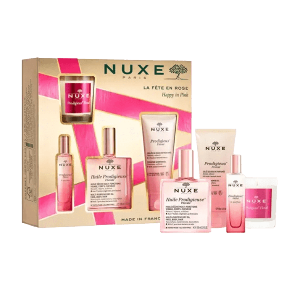 - Coffret de beauté NUXE (Huile Prodigieuse 100ml, Parfum 15ml, Gel Douche 100ml, Bougie parfumée 70g)