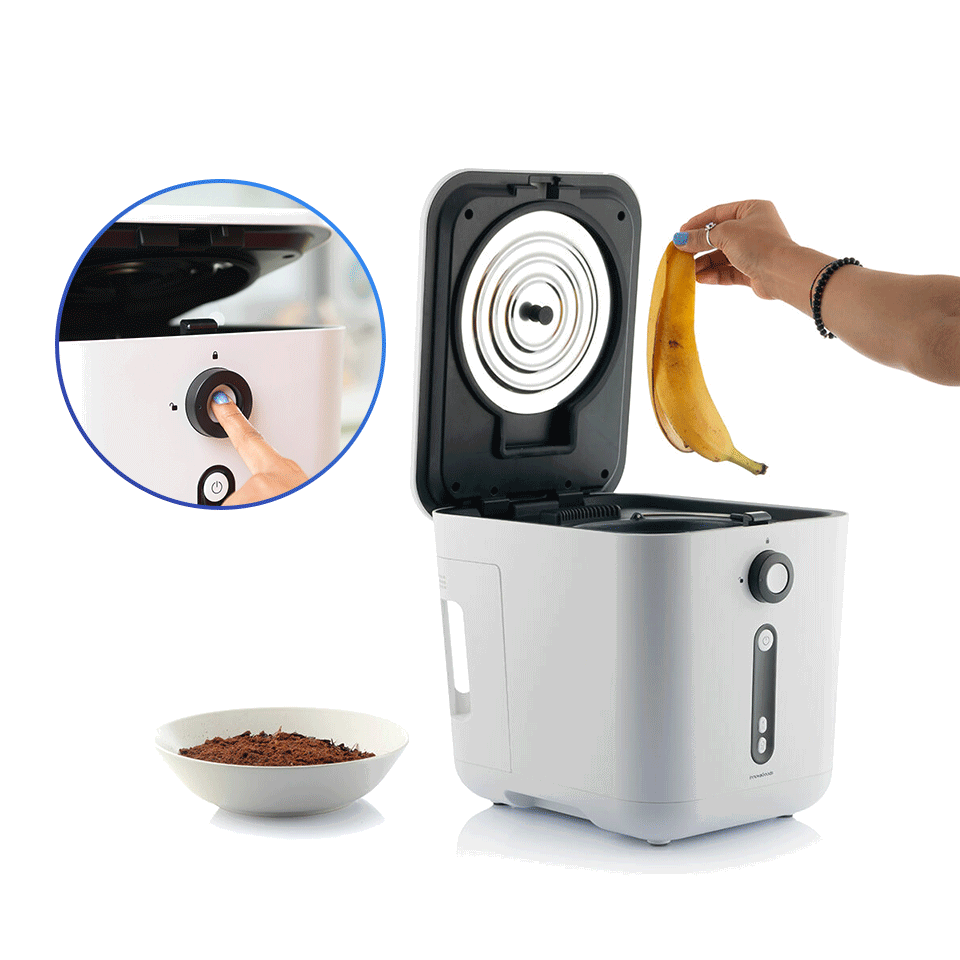 Compact et élégant, il permet de recycler simplement les restes organiques en les séchant, les broyant et les refroidissant automatiquement pour obtenir un compost propre et prêt à l’emploi.