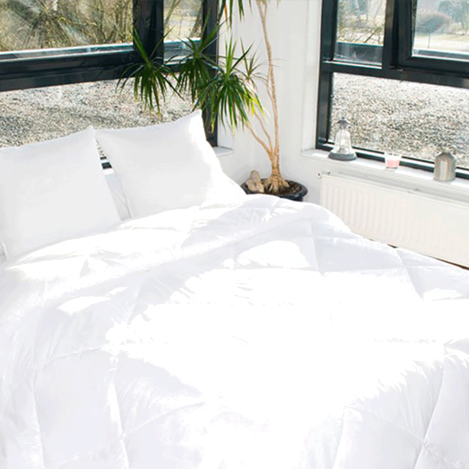 Une couette synthétique 450g/m² très chaude, gonflante et moelleuse.
