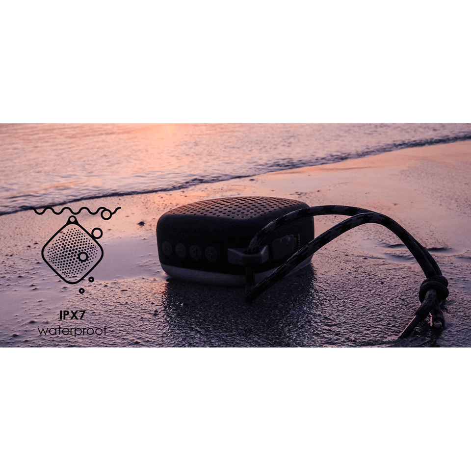 Sa coque robuste protège l’enceinte des chocs du quotidien et, grâce à sa certification IPX7, elle est totalement étanche : vous pouvez même l’immerger sous l’eau — pratique si vous oubliez que la marée monte !