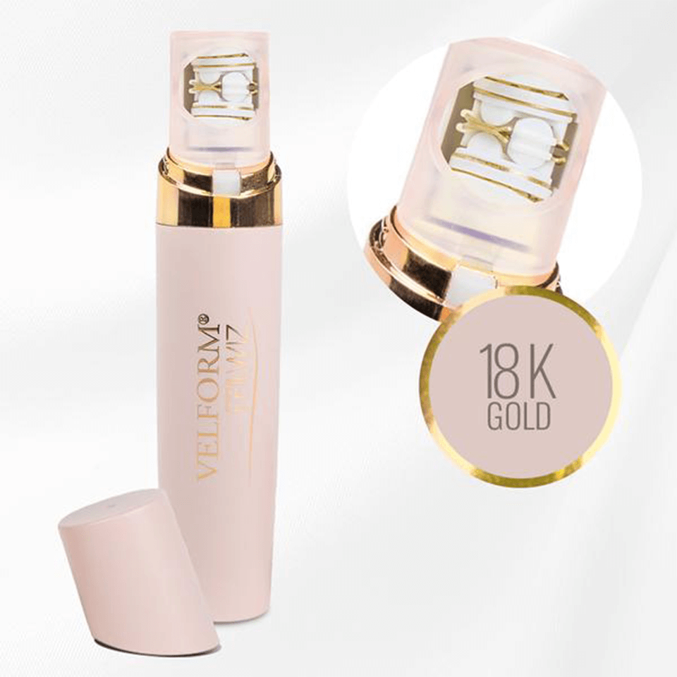 Épilation douce et précise, même sur les zones sensibles, grâce à une tête plaquée or 18 carats