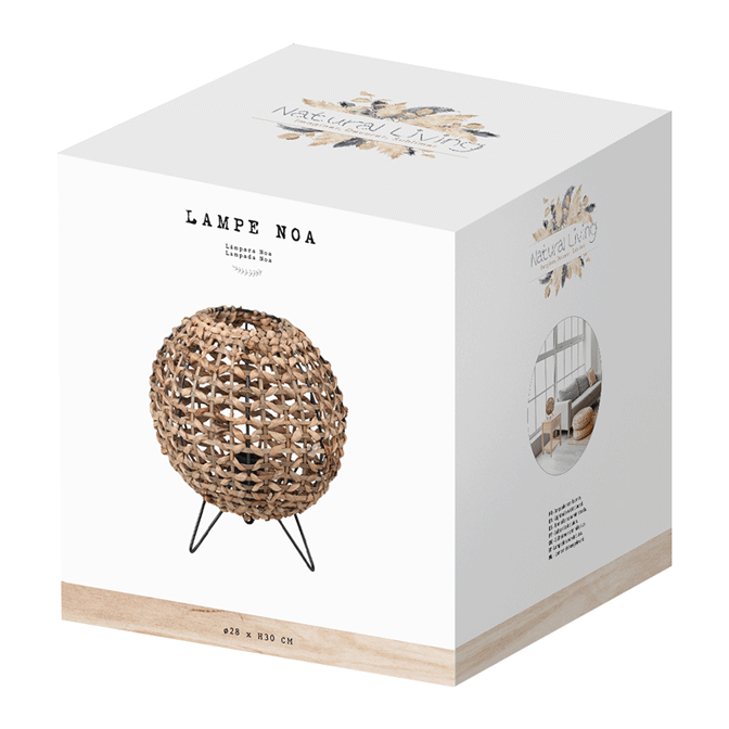 La lampe NOA de NATURAL LIVING invite la nature dans votre intérieur grâce à l’alliance élégante du métal noir et de la jacinthe d’eau.