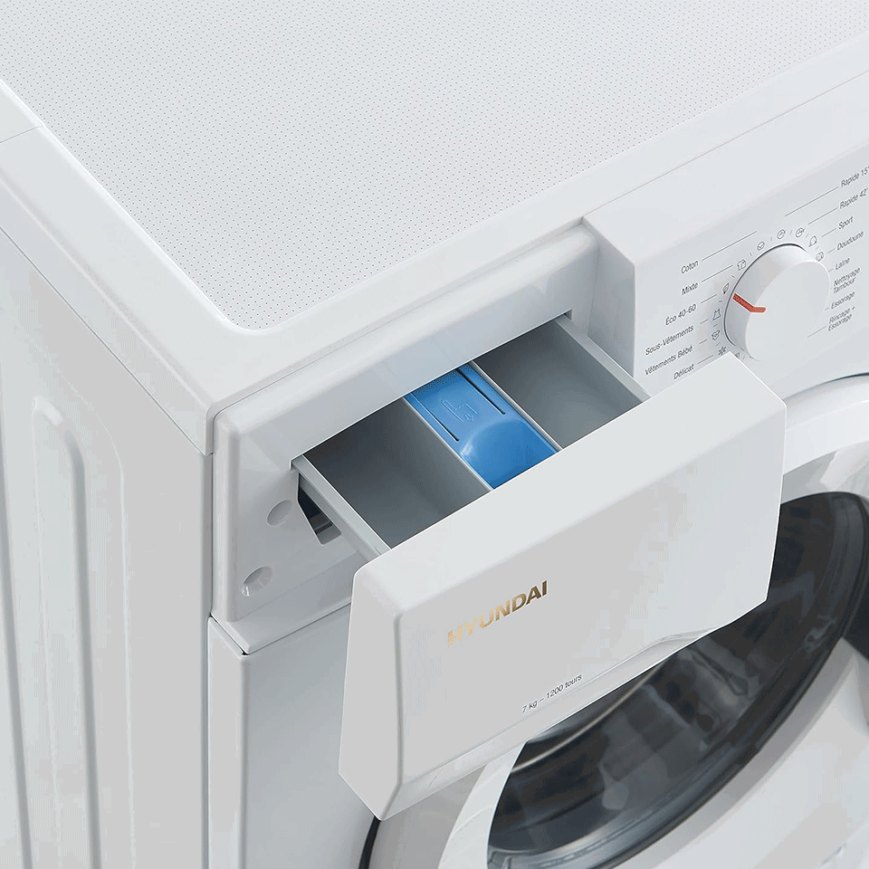 Avec un tambour de 7 kg et 41 L de volume, ce lave-linge Hyundai est parfait pour les foyers de 2 à 4 personnes, assurant un nettoyage efficace au quotidien.