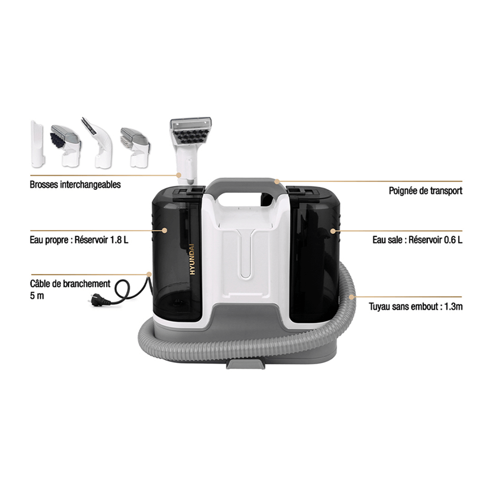 - Nettoyeur-détacheur à eau 2en1 avec 5 brosses inclus HYUNDAI