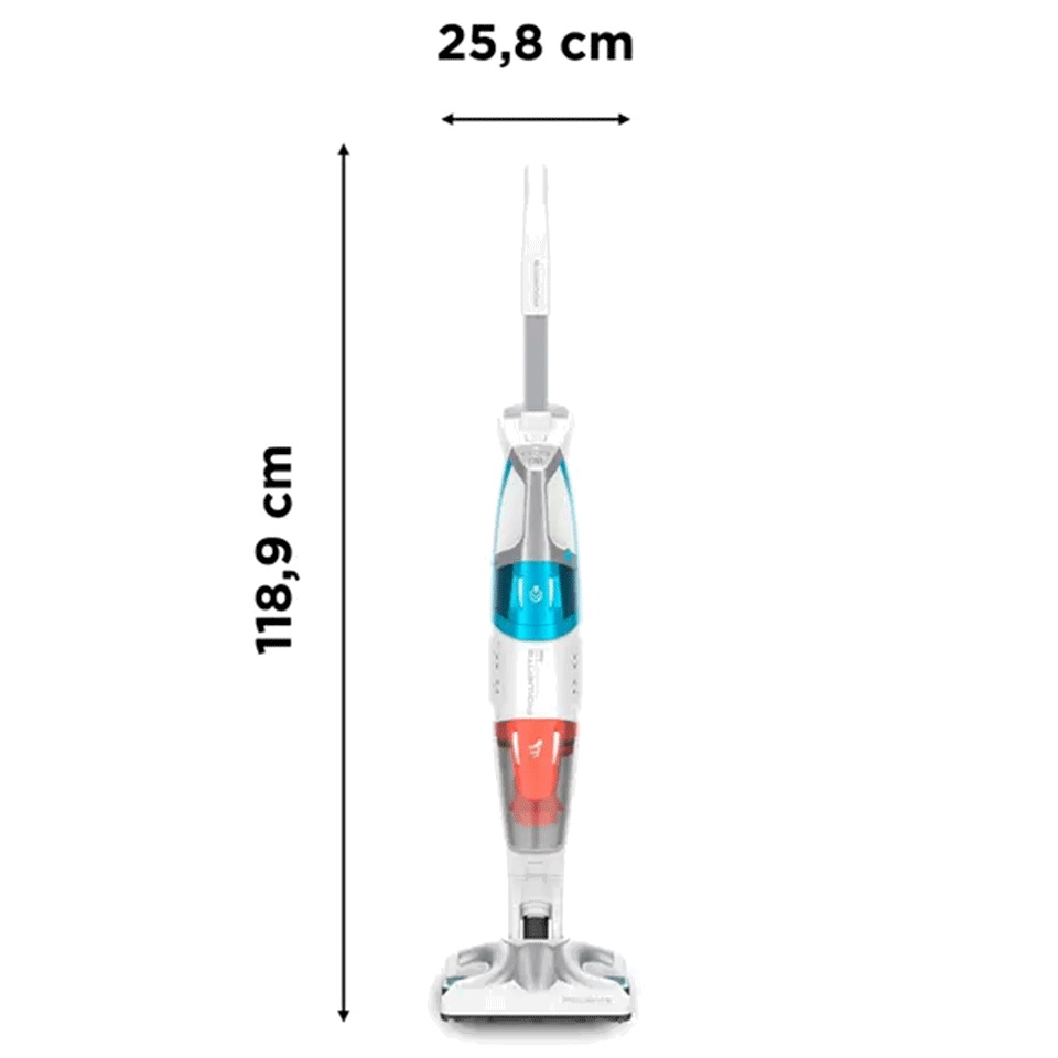 Confort et praticité : poignée ergonomique, roulettes pour faciliter le transport, système de retrait de la lingette sans contact avec les mains, réservoir d’eau amovible, base de rangement, sac de rangement pour les accessoires