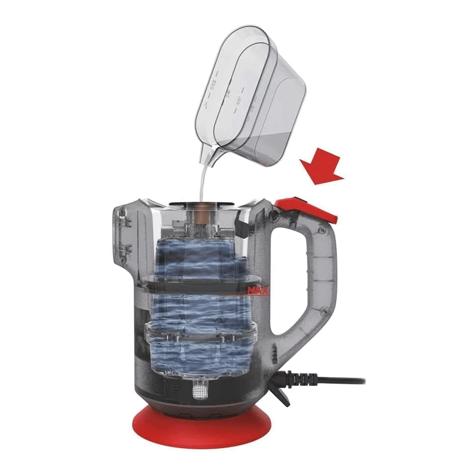 Son réservoir de 0,37 litre assure une autonomie confortable pour traiter différentes surfaces : sols durs, tissus, meubles, rideaux…