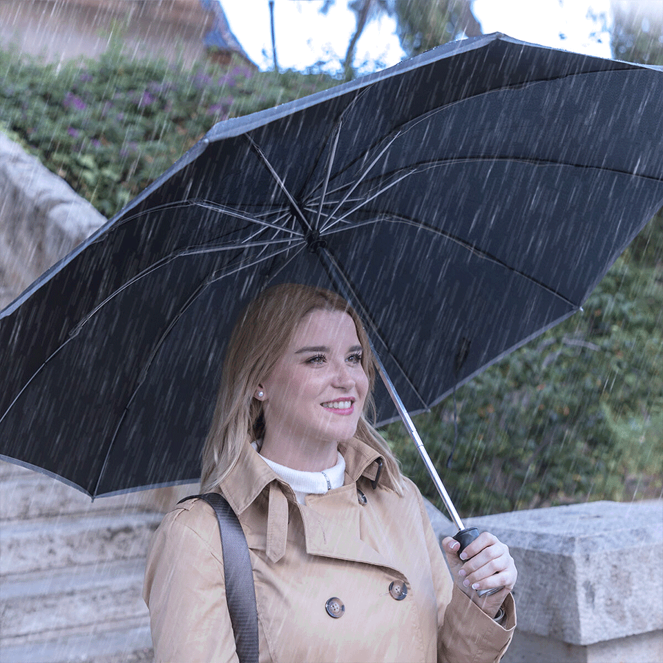 Pensé pour vous accompagner même de nuit, ce parapluie intègre une lumière LED dans sa poignée ainsi qu’une bande réfléchissante à 360° sur tout son pourtour.
