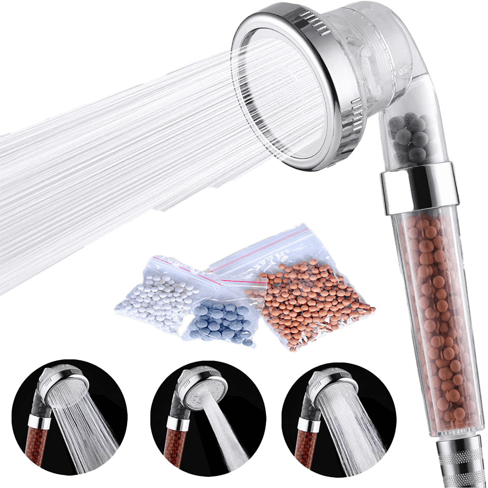 Cette pomme de douche est un système de filtration à 3 couches de pierre qui procure des avantages remarquables pour la santé.