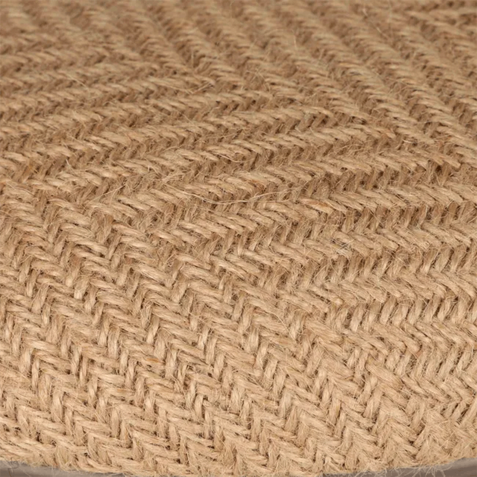 Son assise en jute apporte une note chaleureuse et authentique qui contraste élégamment avec le métal.