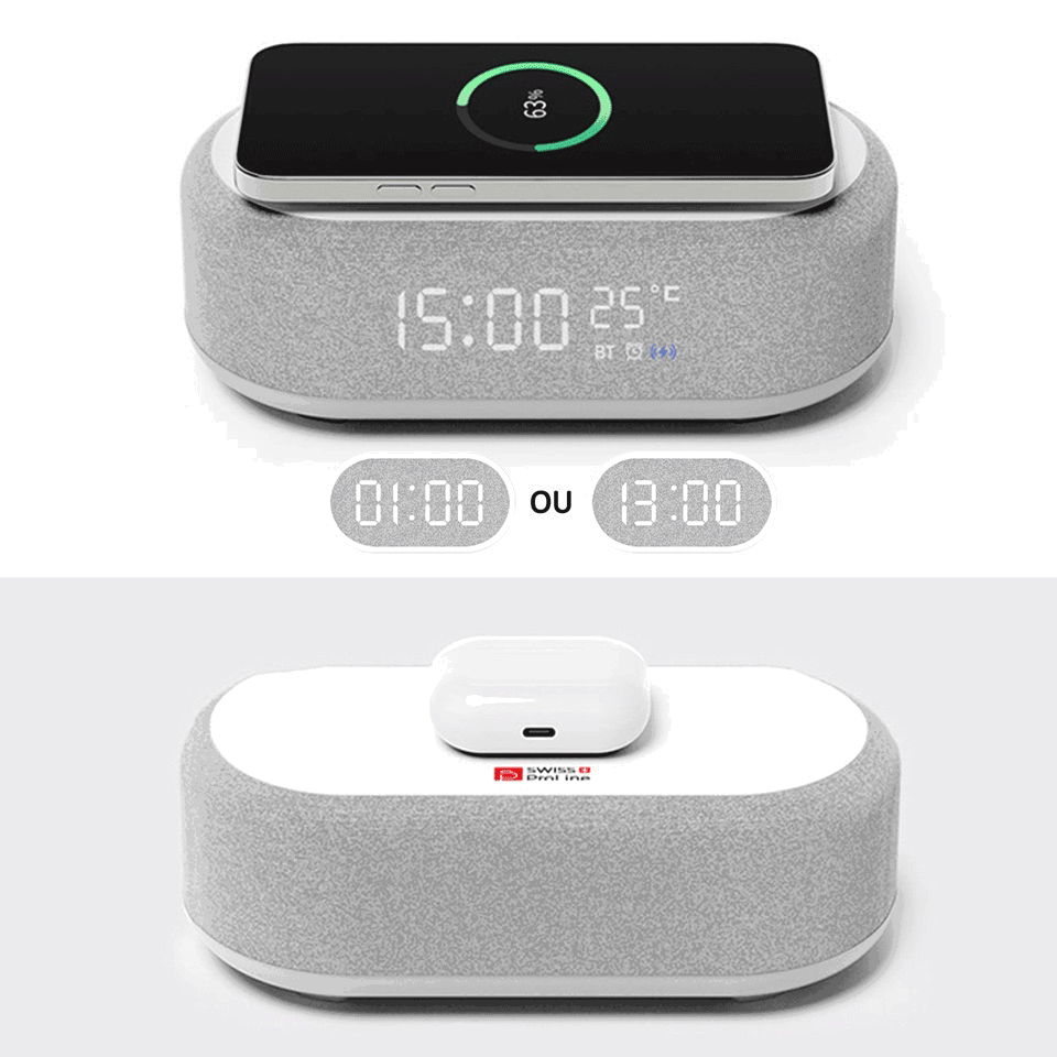 Réveillez-vous avec style grâce au réveil multifonction Swiss ProLine, l’alliance parfaite entre technologie, design et praticité. Plus qu’un simple réveil, c’est un véritable hub de confort moderne pour votre table de nuit.