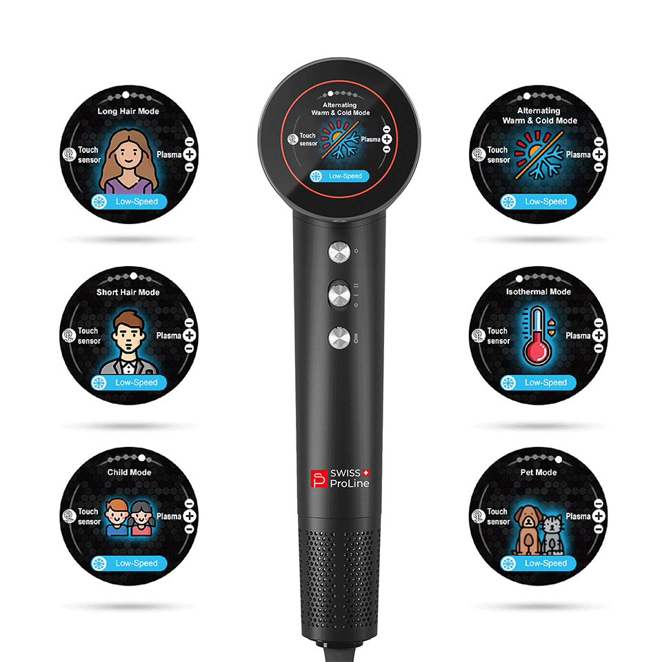 Pensé pour celles et ceux qui recherchent performance, fiabilité et élégance, le sèche-cheveux Swiss ProLine allie technologie professionnelle et simplicité d’utilisation au quotidien.