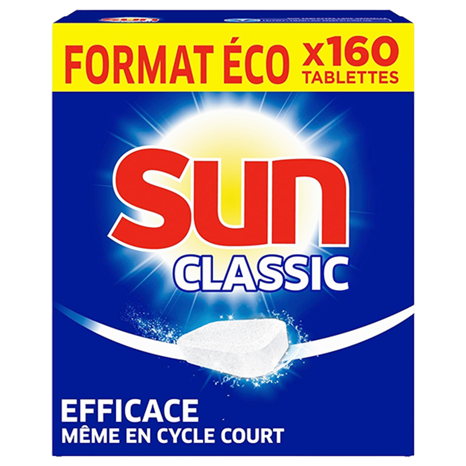 Les pastilles Sun Classic sont fabriquées en France, sans phosphates, dans une usine engagée pour une planète plus verte.