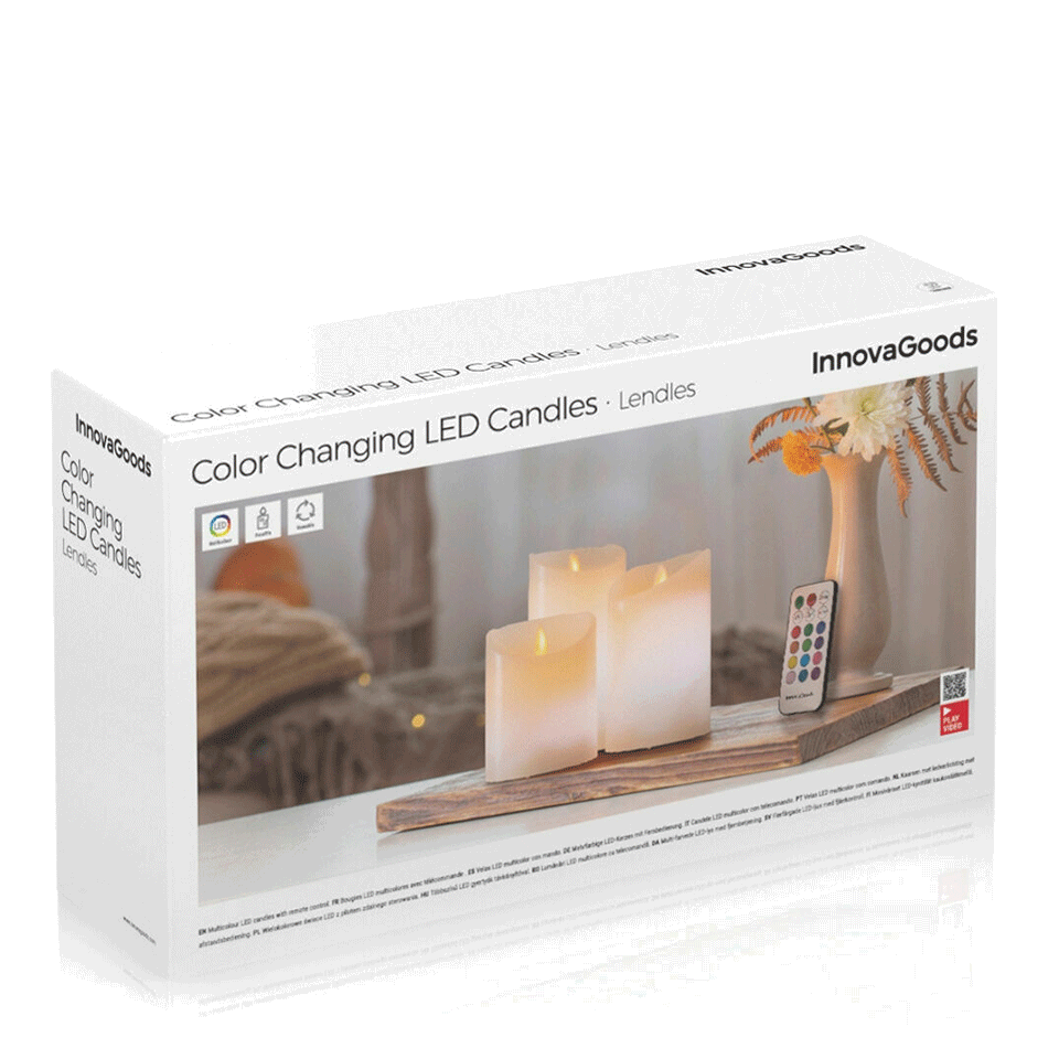 Set de 3 Bougies LED multicolores avec effet flamme et télécommande InnovaGoodsSet de 3 Bougies LED multicolores avec effet flamme et télécommande InnovaGoods