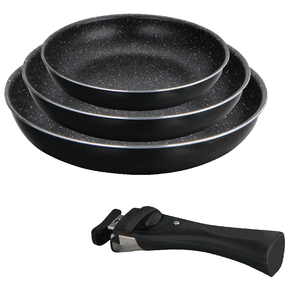 Set de 3 tailles pratiques (20, 24, 28 cm) : Le set comprend trois poêles de tailles 20 cm, 24 cm et 28 cm, idéales pour toutes vos préparations culinaires, des petites portions aux grandes recettes.