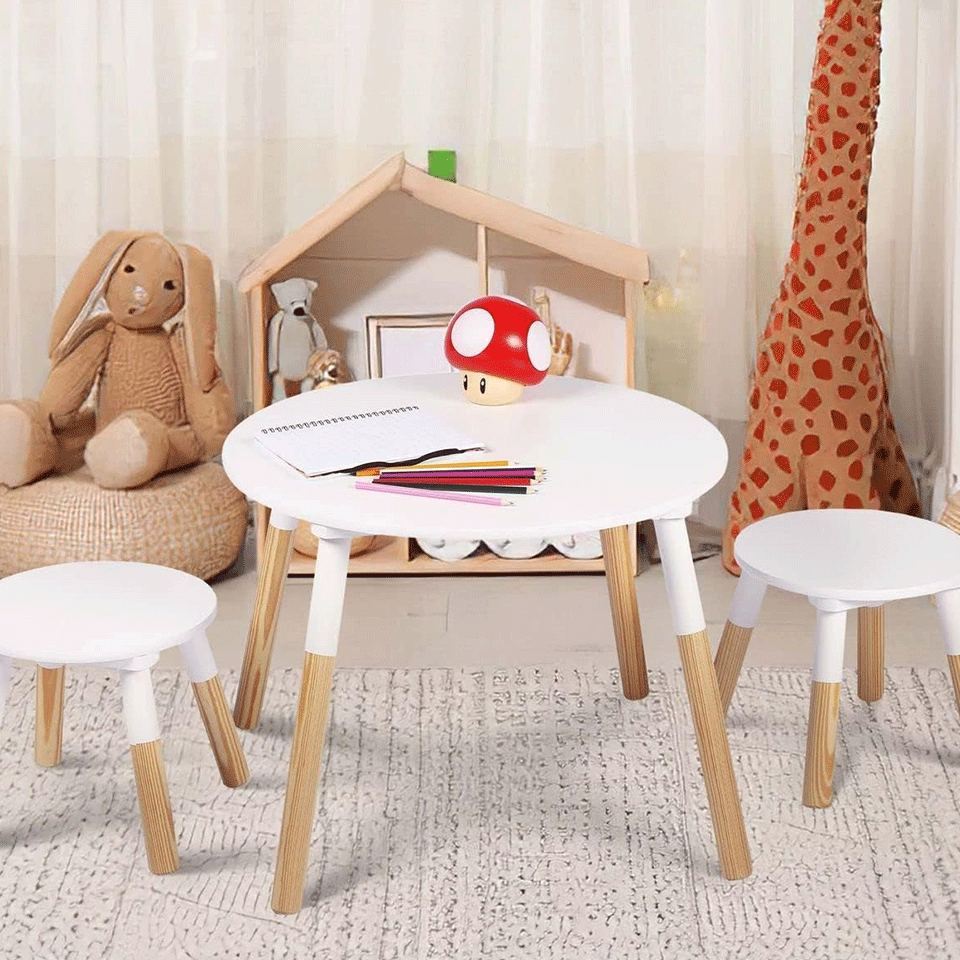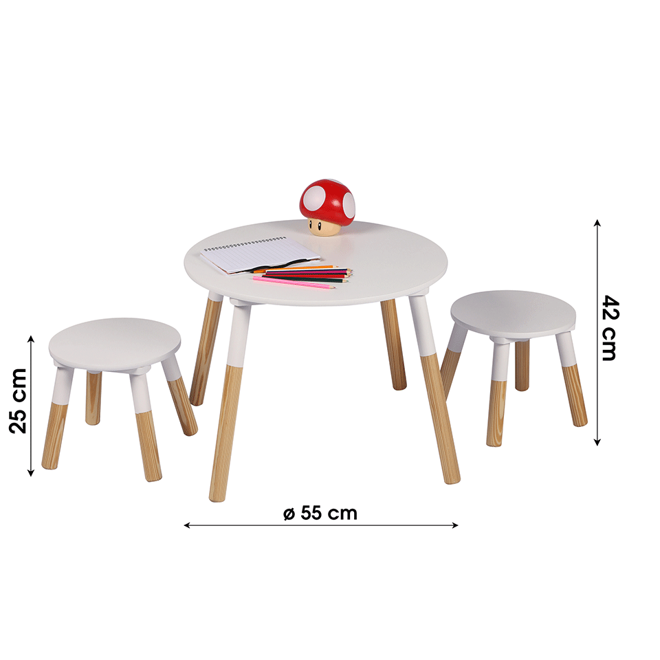 Les deux tabourets inclus permettent de partager des moments créatifs, favorisant l’échange, la concentration et la motricité fine, tout en offrant un confort adapté aux plus petits.